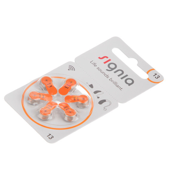 باتریهای سمعک در سایزهای مختلفی تولید میشوند که بارنگهای زرد، آبی، نارنجی و قهوهای نمایش داده میشوند. این باتریها توسط شرکتهای گوناگونی تولید میشوند؛ «سینیا» (Signia) یکی از تولیدکنندگان بزرگ باتری سمعک که محصولات خود را تحت لیسانس شرکت «زیمنس» طراحی و تولید میکند. باتری سمعک کد 13 محصولی از این برند است که در سایز 13 و با رنگ نارنجی روانه بازار شده است. در این باتریها از فناوری روی-هوا استفاده شده است که با قرار گرفتن در معرض هوا فعال میشود. به این ترتیب اگر برچسب پلاستیکی پشت باتری از آن جدا شود، اکسیژن هوا با فلز روی واکنش نشان میدهد و باعث میشود که باتری به حالت فعال درآید. از اینرو یک برچسب پلاستیکی پشت باتری قرار گرفته است تا باتری در حالت غیر فعال باقی بماند. این مجموعه شامل 5 پک باتری است که تهیه آن نسبت به دیگر محصولات، مقرونبهصرفه است.